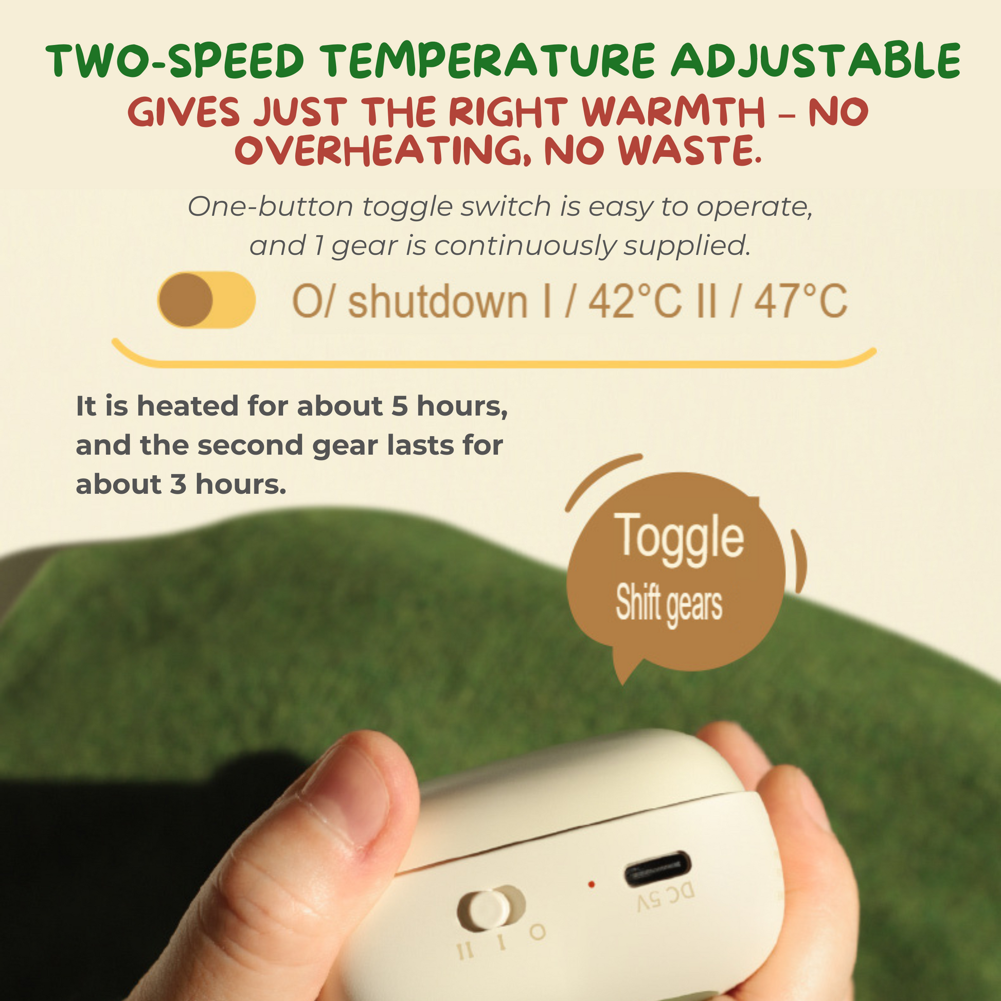Niloufar Absolutely love this cute hand warmer! It was delivered quickly and works perfectly. The two temperature settings are great. Highly recommend it for anyone with chilly hands!